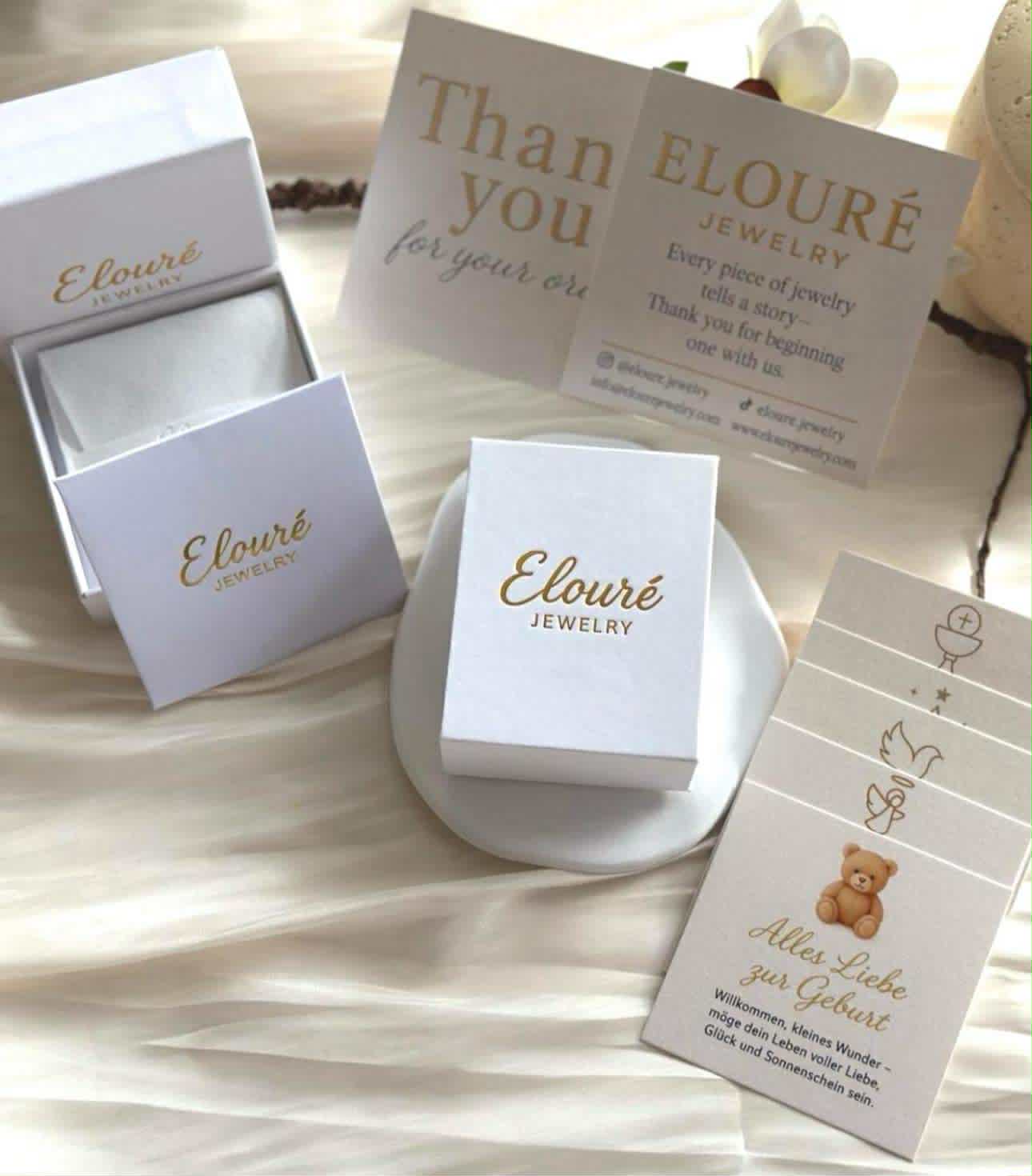 So so schön. Die Ohrringe sind traumhaft elegant, edel und super verarbeitet. Alles war liebevoll verpackt – Schmuckschachtel, Thank You Karte, Poliertuch & Wachssiegel.